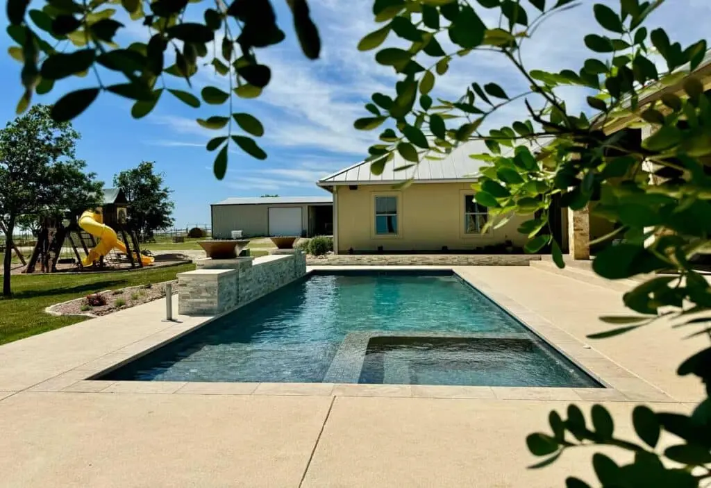 A tanning ledge is a shallow area built into the pool that allows you to relax in the water without fully swimming. It’s ideal for lounging, cooling off on hot days, or enjoying the pool with young children. Tanning ledges are a popular feature for homeowners who want both comfort and style built into their fiberglass pool.