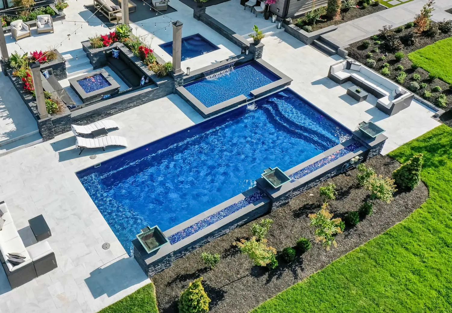 - Spillover features that connect pools and spas