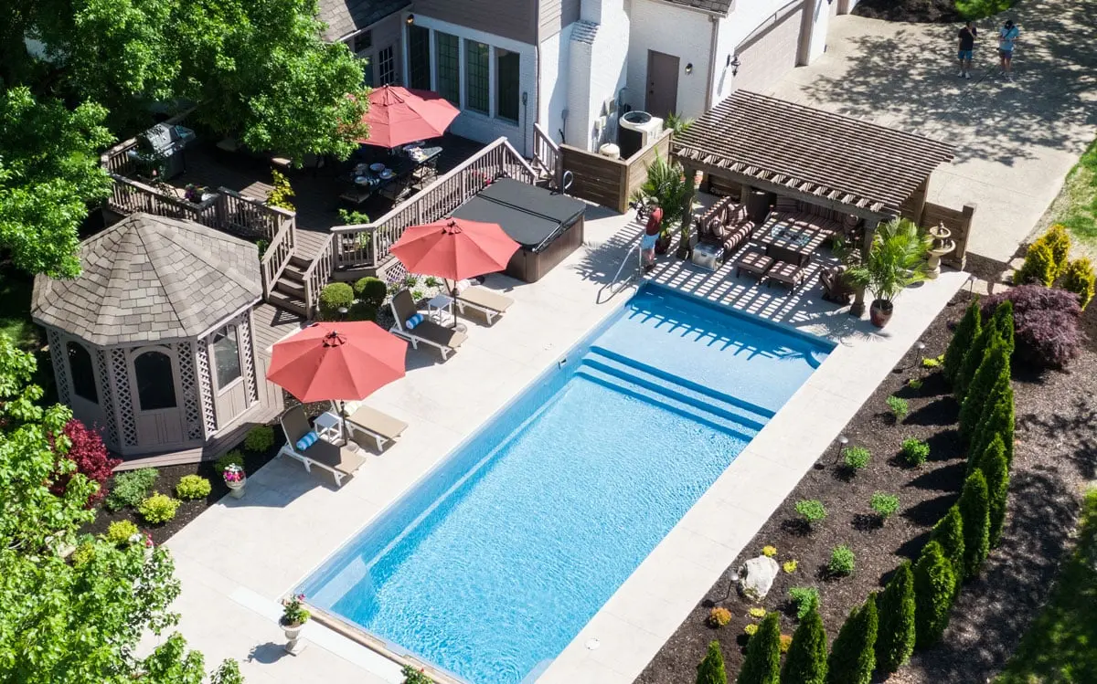 A tanning ledge is a shallow area built into the pool that allows you to relax in the water without fully swimming. It’s ideal for lounging, cooling off on hot days, or enjoying the pool with young children. Tanning ledges are a popular feature for homeowners who want both comfort and style built into their fiberglass pool.