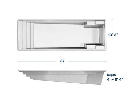 Transform your backyard into a tropical retreat with the Olympia 12. This rectangular fiberglass pool offers spacious swim areas and a sleek design perfect for relaxing and entertaining.