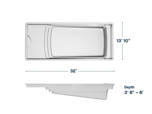 The Lake Shore is a rectangular fiberglass pool with a calm, refined design, offering a relaxing layout that brings spa-like comfort and timeless style to your backyard.