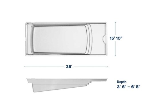 The Lake Shore is a rectangular fiberglass pool with a calm, refined design, offering a relaxing layout that brings spa-like comfort and timeless style to your backyard.