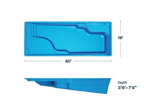 “The Ariel 16 is a roomy rectangular fiberglass pool with tanning ledges, swim-up seating, and generous deep swim space, built for backyard gatherings, refreshing laps, and endless summer fun.